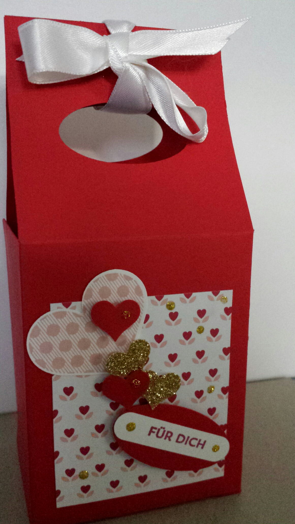 Heute habe ich nicht ganz so viel Zeit. Ich möchte euch aber dennoch zwei Verpackungen für Valentinsgeschenke zeigen. Diese habe ich nach Anleitungen gefertigt, die ich im Netz gefunden habe. Das eine ist eine Ziehverpackung für Schokolade. Das zweite ist eine Gabelbox. So sehen sie aus:
