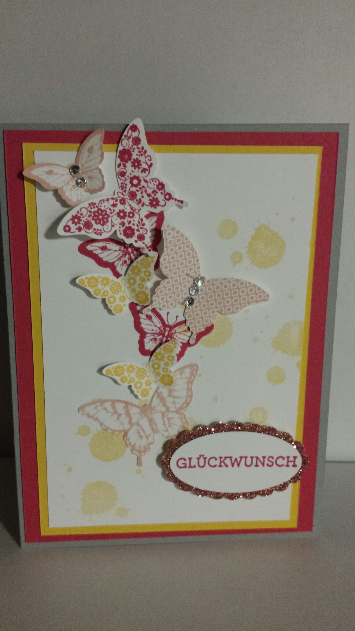 Sodann habe ich folgende Stempelsets benutzt: „Papillon Potpourri“, „Gorgeous Grunge“ und „Eins für alles“.