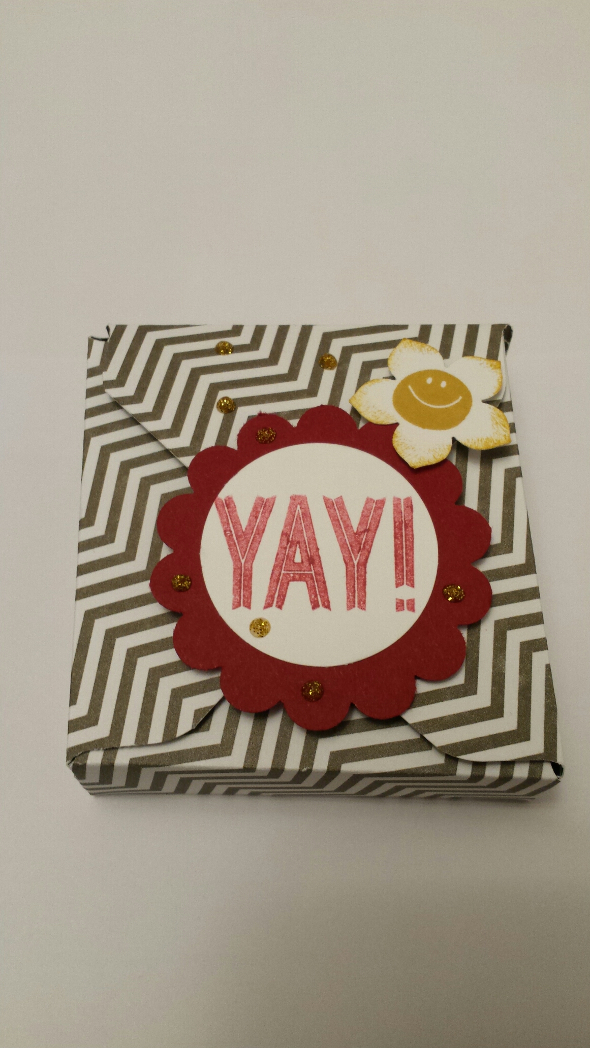 Am Freitag war ich einkaufen. Mir fielen hanutas ins Auge und ich dachte: „Die kann man doch super verpacken.“ Gesagt, getan. Mit Hilfe des Envelop punch Bord ist das auch gar kein Problem. Und so sehen meine beiden Ideen aus: