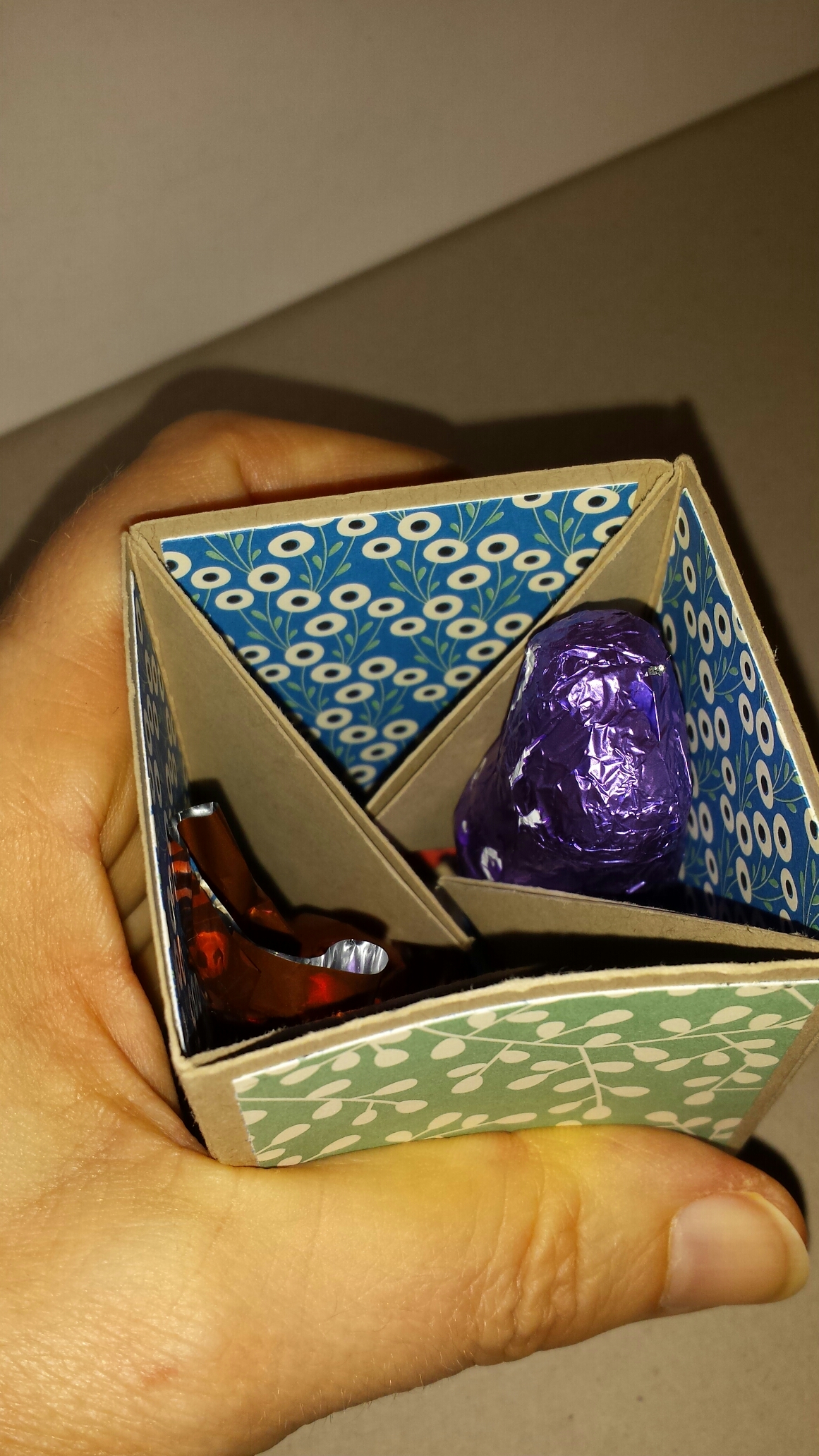 Hinein passt übrigens ein kleiner Schokohase und ein Schokoei.