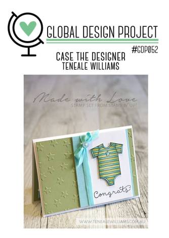 es ist wieder Challenge-Time. Dieses mal heißt es wieder „Case the Designer“, d.h. wir können uns von allen Elementen der vorgegebenen Karte inspirieren lassen. Die Karte hat diesmal Teneale Williams und schaut so aus: