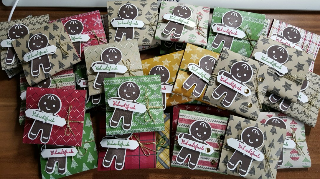 Viele kleine Lebkuchenmänner. Das Designerpapier heißt übrigens „gemütliche Weihnachten“ und ist von stampin up. Das strahlt es auch aus, findet ihr nicht?