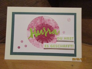 heute möchte ich euch eine Glückwunschkarte zeigen, die jemand zur bestandenen Prüfung erhalten wird. So sieht die Karte aus: