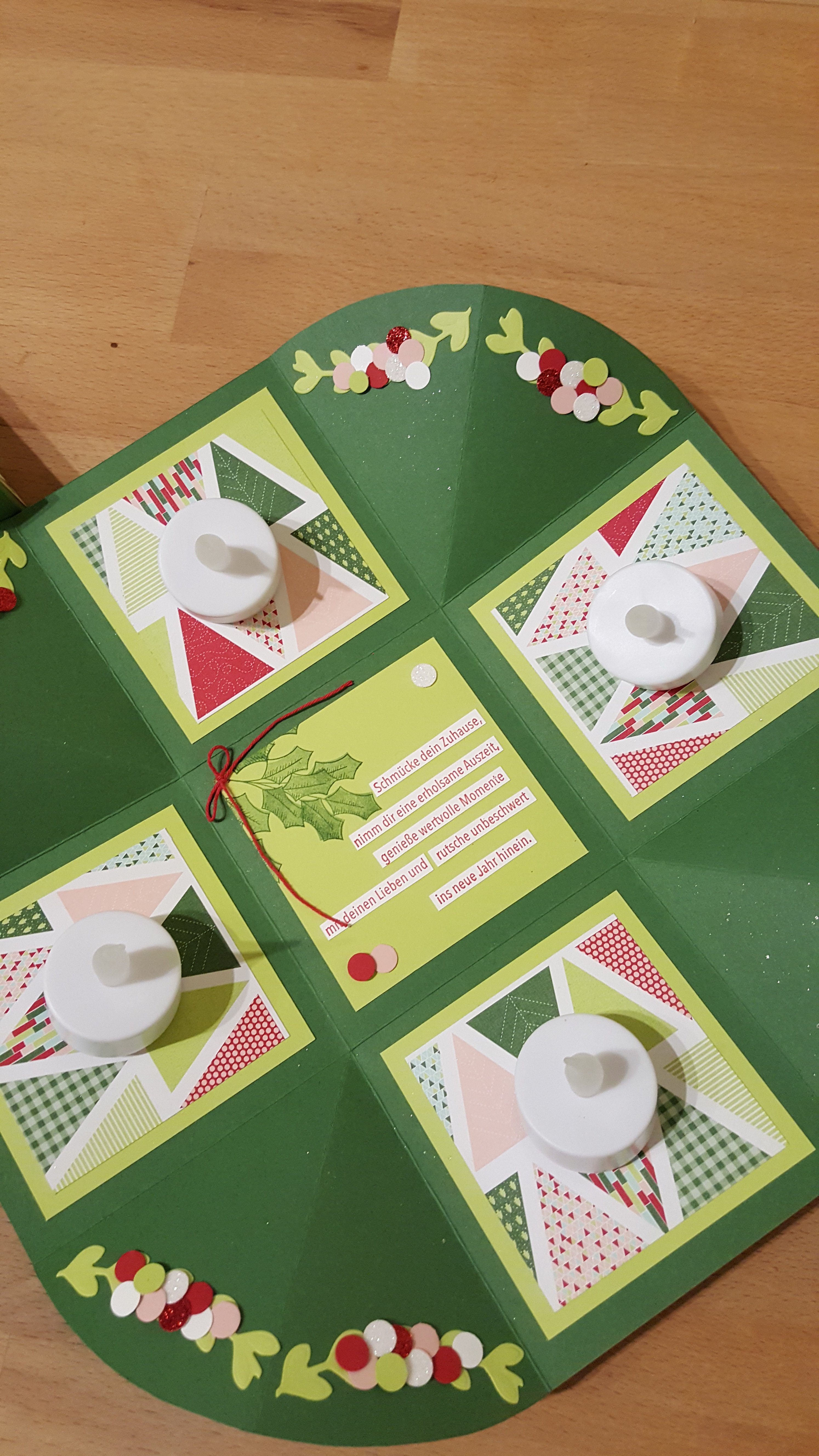 Hier noch ein zweites Dekor, ebenfalls mit dem Designerpapier Weihnachtsquilt.