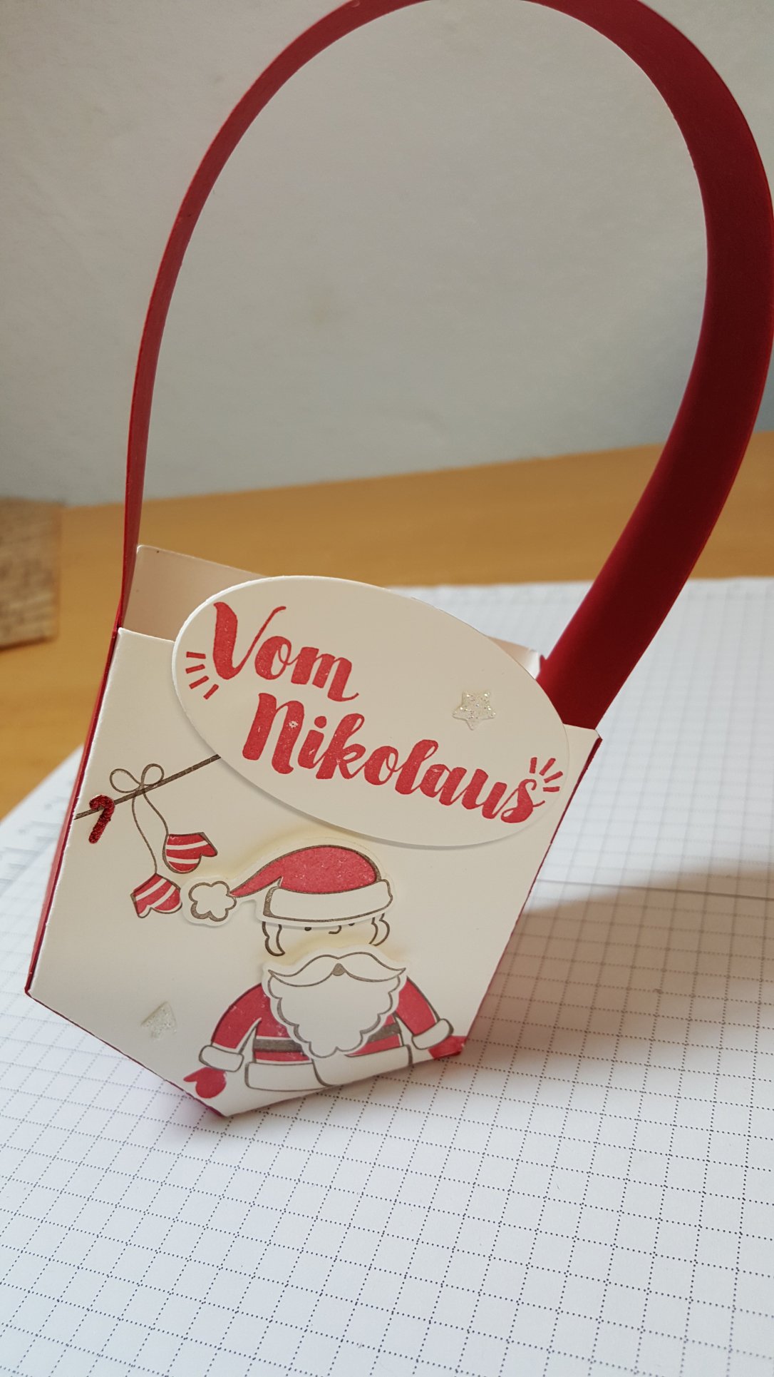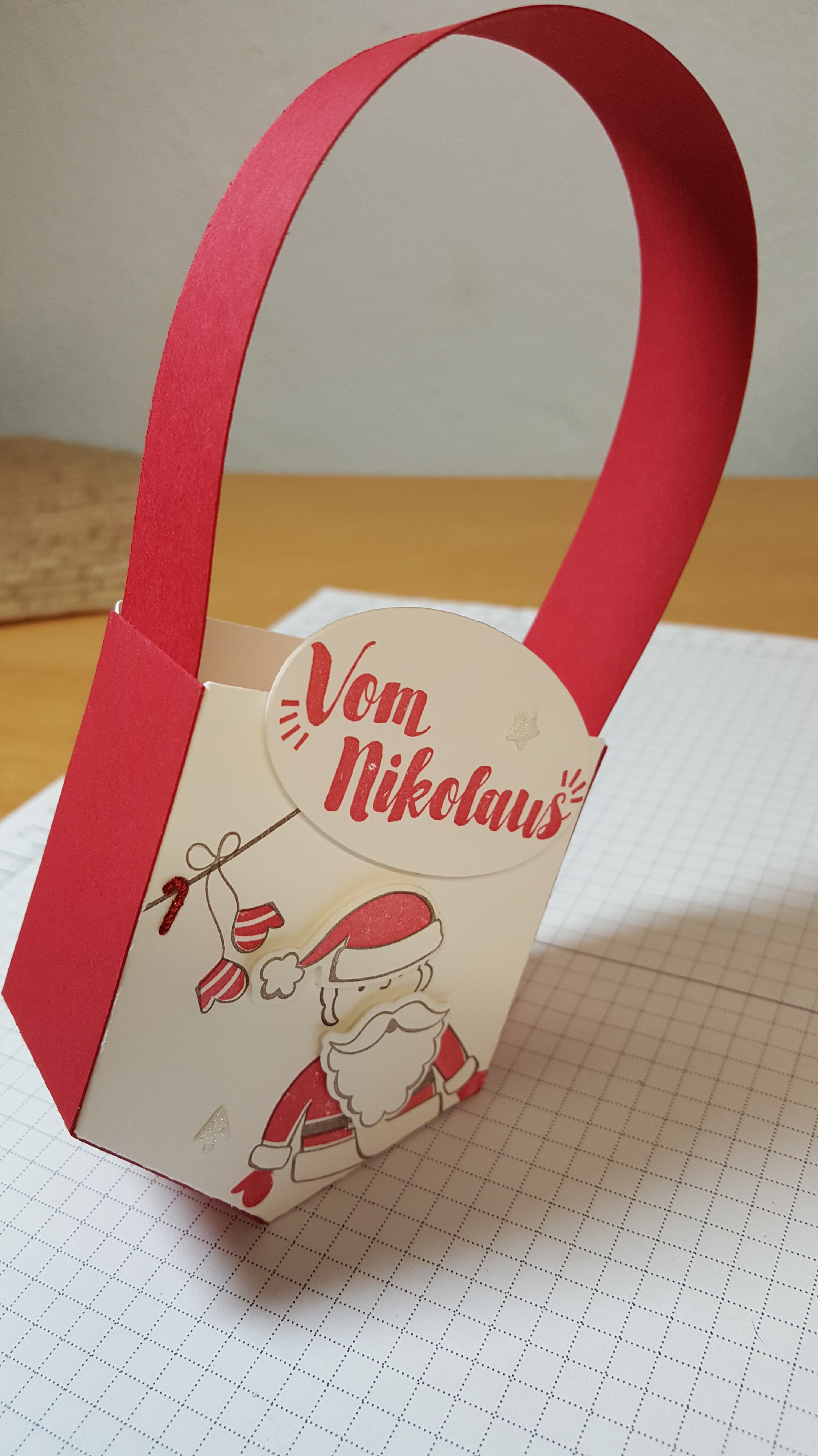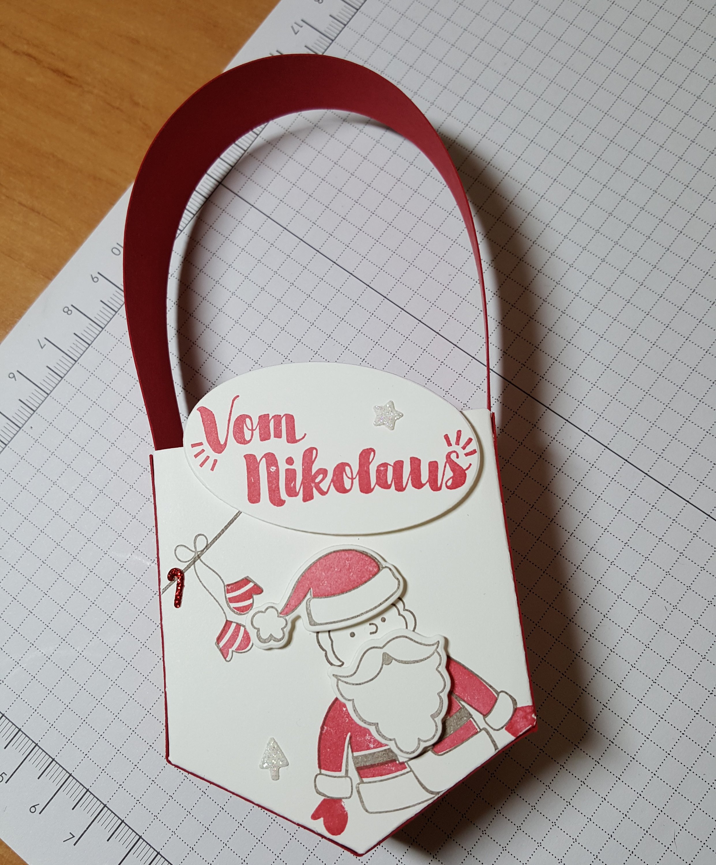 Heute zeige ich euch eine etwas andere Nikolaustüte. Was daran anders ist? Eindeutig die Form. Schaut selbst: