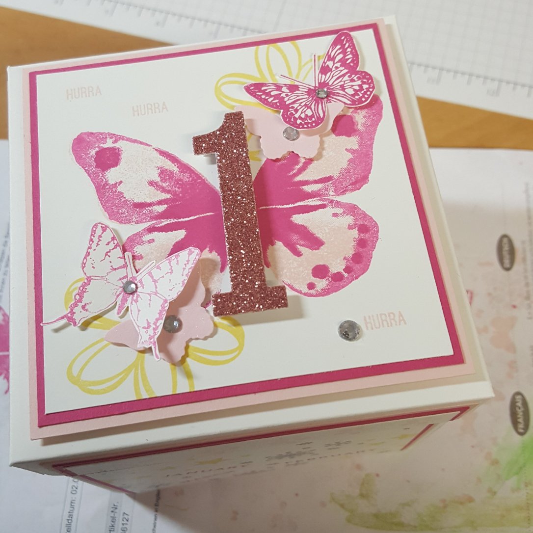 Dieses Mal ist die Box zum ersten Geburtstag eines Mädchens und ich durfte Mädchenfarben nutzen.