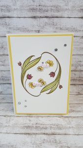 Wie ihr seht, habe ich aus der Tulpen-Ranke ein Osterei geformt. Naja. Ansatzweise. Aber da ich kein Osterstempelset habe, wollte ich das Ei auf andere Art und Weise formen.