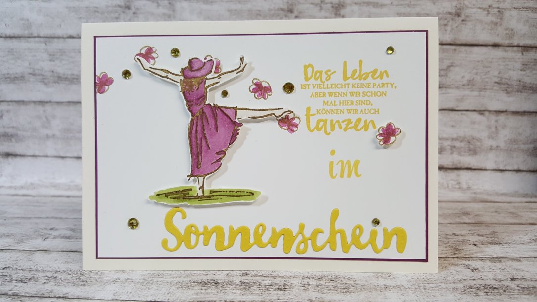 Was bedeutet „Sonne“ für mich? Sonne bedeutet Lebensfreude. Lebensfreude ist Tanzen. Tanzen in Sonnenschein ist Lebensfreude pur! Und genau das möchte ich euch mit dieser Karte zeigen: