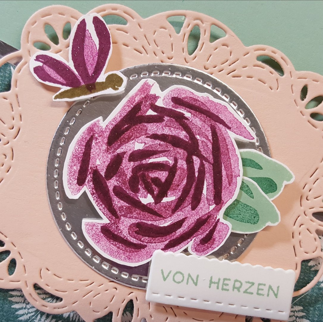 Die Blume, den Schmetterling und die Blätter habe ich übrigens mit der Hand ausgeschnitten.