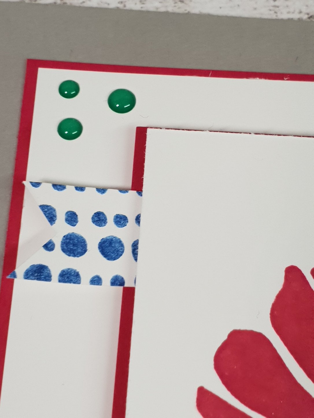 Nach Weihnachten war mir nach Farbe und so habe ich Kussrot, Kleegrün und Blaubeere genutzt. Der Spruch ist übrigens aus dem Set „Um die Ecke“.