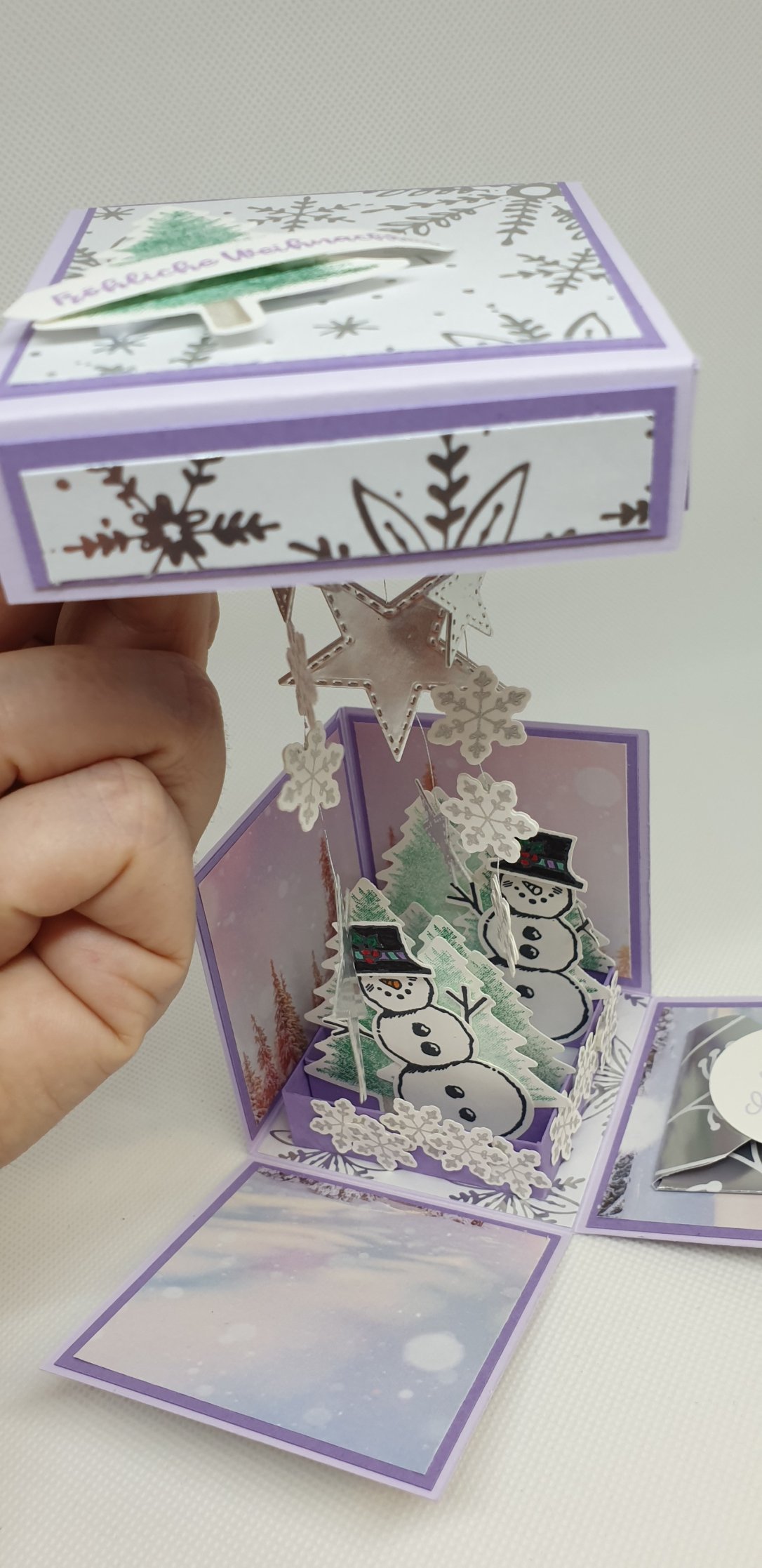 4 Gedanken zu „Weihnachtliche Explosionsbox mit den Stempelsets Tanne und Karos und Frostige Grüße von stampin up“