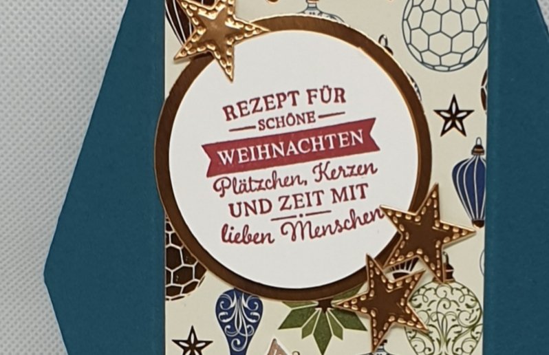 Der Spruch ist aus dem Set „Das schönste zum Fest“ von stampin up und passt zu 15 Minuten Weihnachten sehr gut, oder?