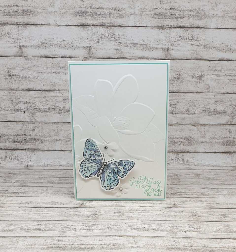 Den Hintergrund habe ich dieses mal nur geprägt und dafür den Prägefolder Magnolien genutzt. Ich finde diesen Folder richtig schön.
