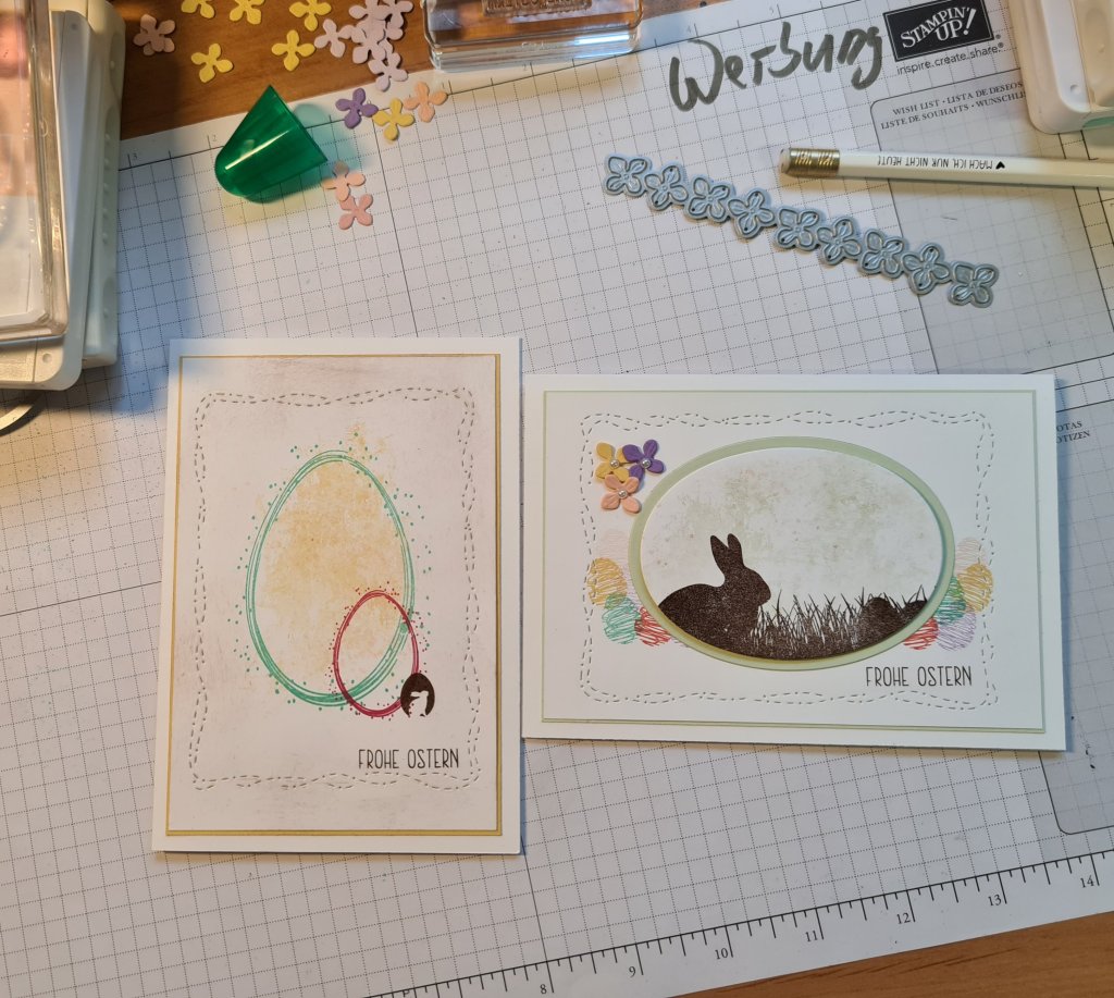 Ich habe sie mit dem Stempelsets „Hasengrüße“ gebastelt. Und ich hatte tatsächlich noch Lust, mehr zu basteln. Deshalb sind noch diese zwei entstanden: