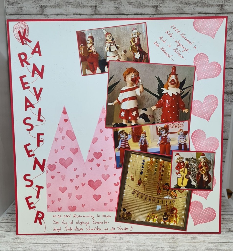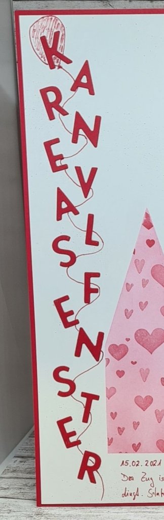 Titel des Layouts lautet: Karnevalsfenster. Damit ich das in einigen Jahren noch weiß, habe ich die Lesart mit einer gezeichneten Ballonschnur angedeutet.