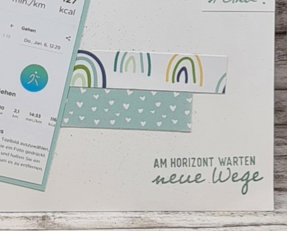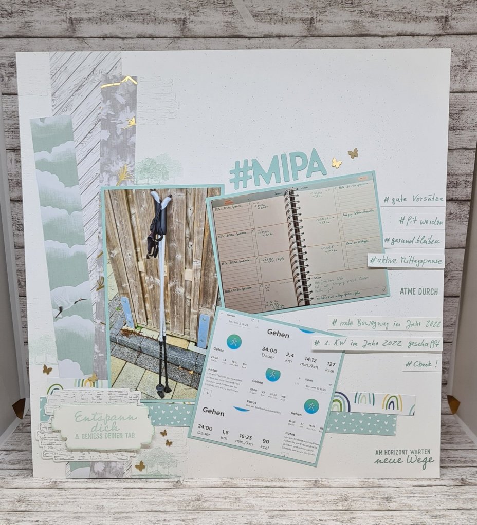 In diesem Jahr habe ich mir etwas vorgenommen: ich möchte jeden Tag eine aktive Mittagspause genießen und eine halbe Stunde rund um Geyen walken. Und in der ersten Arbeitswoche habe ich es tatsächlich geschafft und bin irgendwie stolz auf mich. Das musste ich einfach in einem Layout festhalten. So sieht es aus: