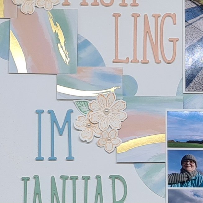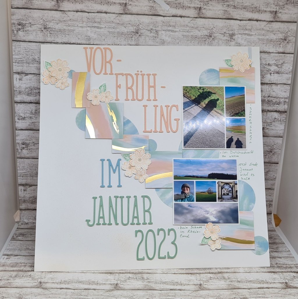 Die Schnipsel des verunglückten One Sheet Wonder aus dem Designerpapier Bezaubernde Bucht von stampin up mussten noch verarbeitet werden. Ich habe mich entschieden, ein Layout zu gestalten,