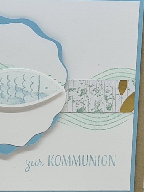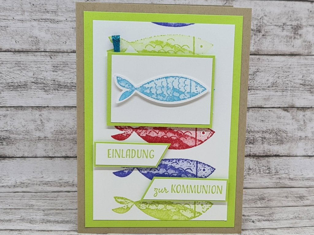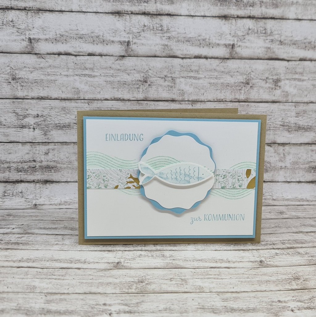 Heute zeige ich euch drei Einladungskarten zur Kommunion mit dem Produktpaket Feierliche Fische von stampin up!, ergänzt um unterschiedliche weitere Produkte.