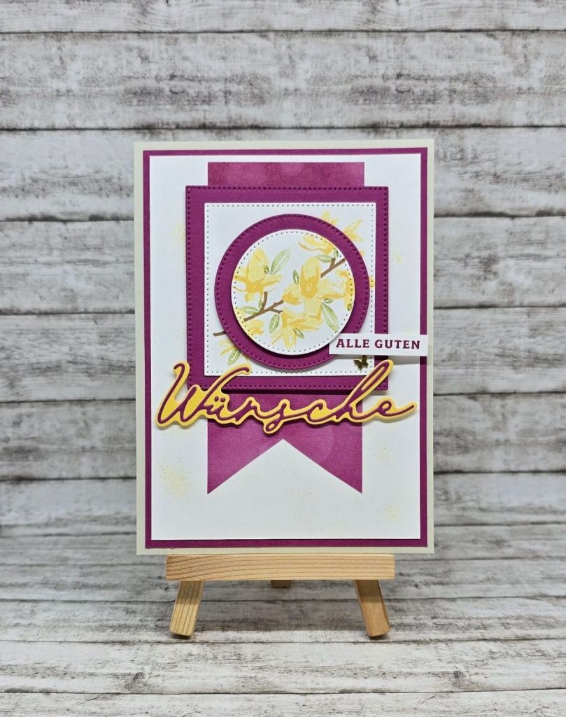 Damit er sich noch besser abhebt, habe ich ihn mit Farbkarton in Sommerbeere hinterlegt – ein kleiner Trick, der für mehr Tiefe sorgt!