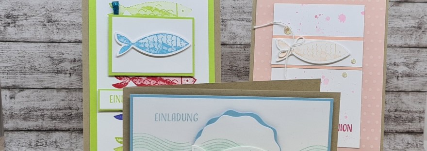 Hallo ihr Kreativen, Heute zeige ich euch drei Einladungskarten zur Kommunion mit dem Produktpaket Feierliche Fische von stampin up!, ergänzt um unterschiedliche weitere Produkte. So sehen die drei Karten aus: Feierliche Fische von stampin up! Und hier ein paar Einzelansichten: Feierliche Fische von stampin up! Hier habe ich neben dem Produktpaket auch das Designerpapier Bezaubernde… Weiterlesen Einladungskarten zur Kommunion mit dem Produktpaket Feierliche Fische