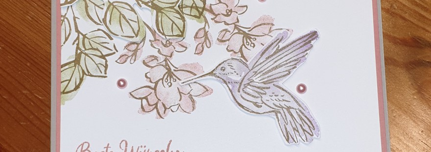 Hallo ihr Lieben, Ich musste endlich das Stempelset Tintentraum einsetzen. Ich hatte schon sooo viele schöne Projekte mit diesem Set gesehen. Nun wollte ich es endlich selbst nutzen. Und ich muss euch sagen, ich bin begeistert. Schaut selbst. Ist das Ergebnis nicht genial? Ist der Colibri in Heideblüte nicht wunderschön? Und die Blüten in Rokko-Rosa… Weiterlesen Glückwunschkarte mit dem Stempelset Tintentraum von stampin up