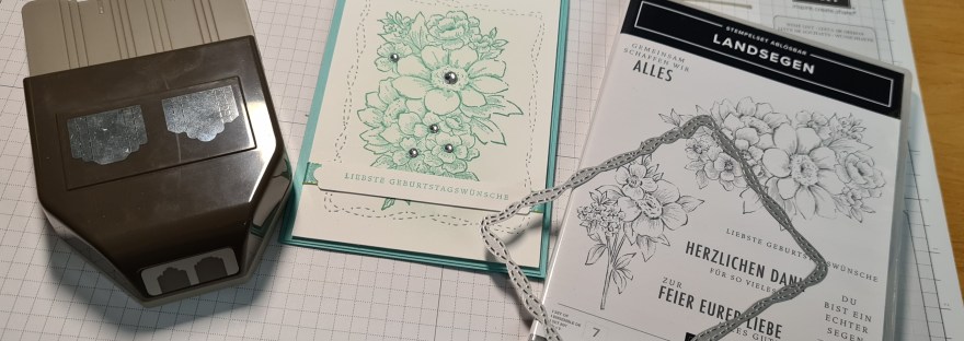 Hallo ihr Lieben, für eine Geburtstagskarte wollte ich dieses Mal etwas Neues und etwas altes kombinieren. Als "etwas Neues" fiel mir das Stempelset "Landsegen" von stampin up in die Hand. Und als "etwas Altes" habe ich mich für die Stanze "Beschwingt bestickt" und die Handstanze "Allerliebste Anhänger" entschieden. Und hier ist das Ergebnis: Wie ihr… Weiterlesen Geburtstagskarte mit dem Stempelset Landsegen von stampin up!