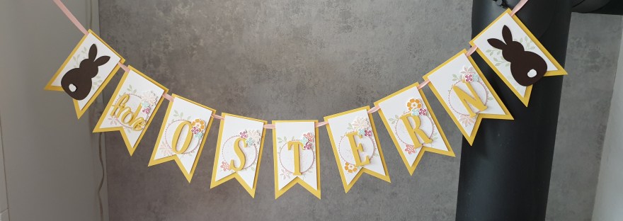 Hallo ihr Lieben, Gestern konnte ich wieder an den Basteltisch. Nur Regen und Sturm. Optimales Wetter, sich ein bisschen Frühling ins Haus zu holen. Und da ich Zeit genug hatte, konnte ich endlich eine Idee umsetzen, die schon lange in meinem Kopf herumspuckte: eine Girlande zu Ostern. Basis der Girlande sind alte Stanzen von stampin… Weiterlesen Osterdekoration die dritte: eine Girlande mit alten und neuen Produkten von stampin up
